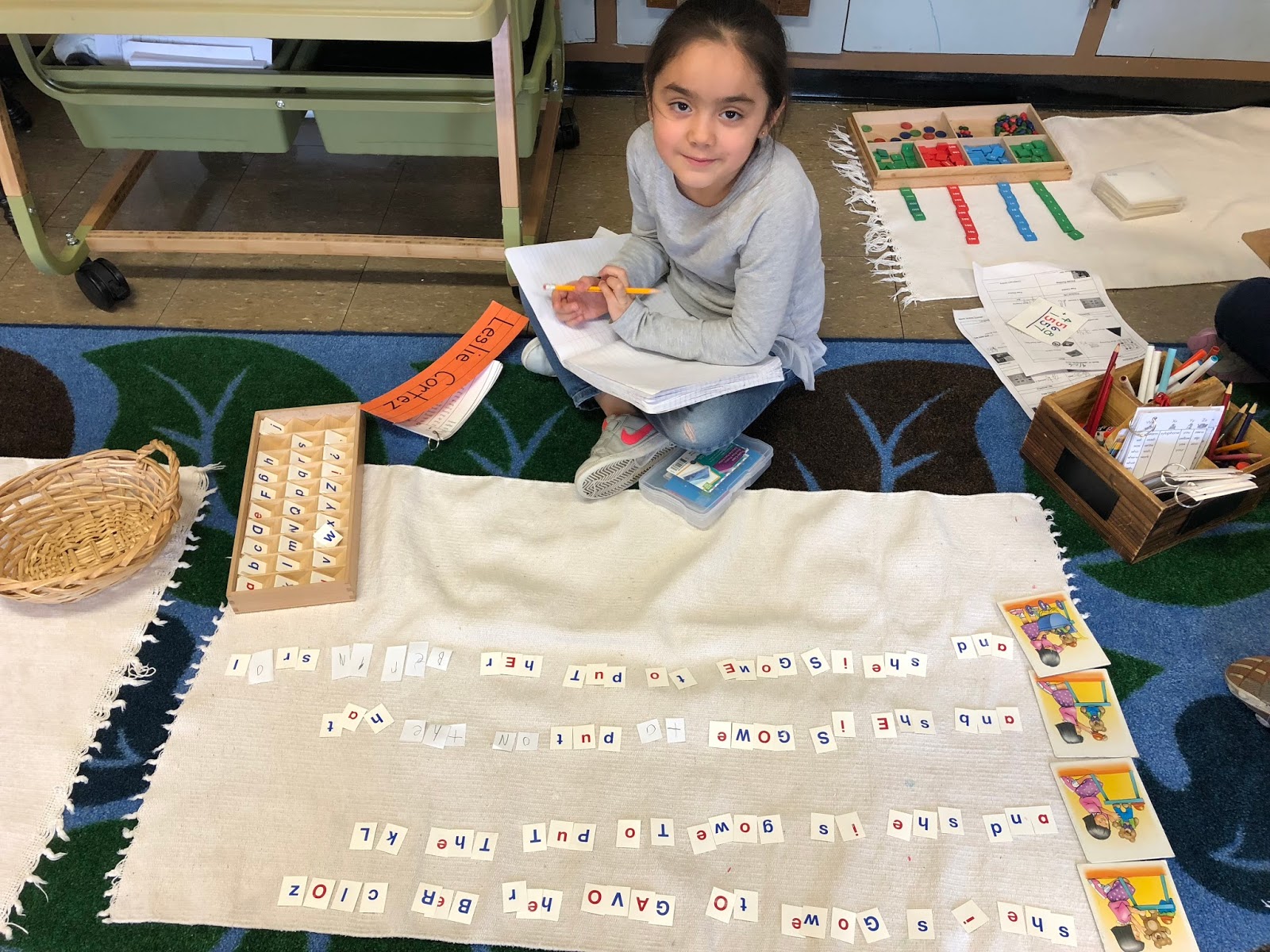 | Maya wrote her sentence after building it with the Moveable Alphabet. |